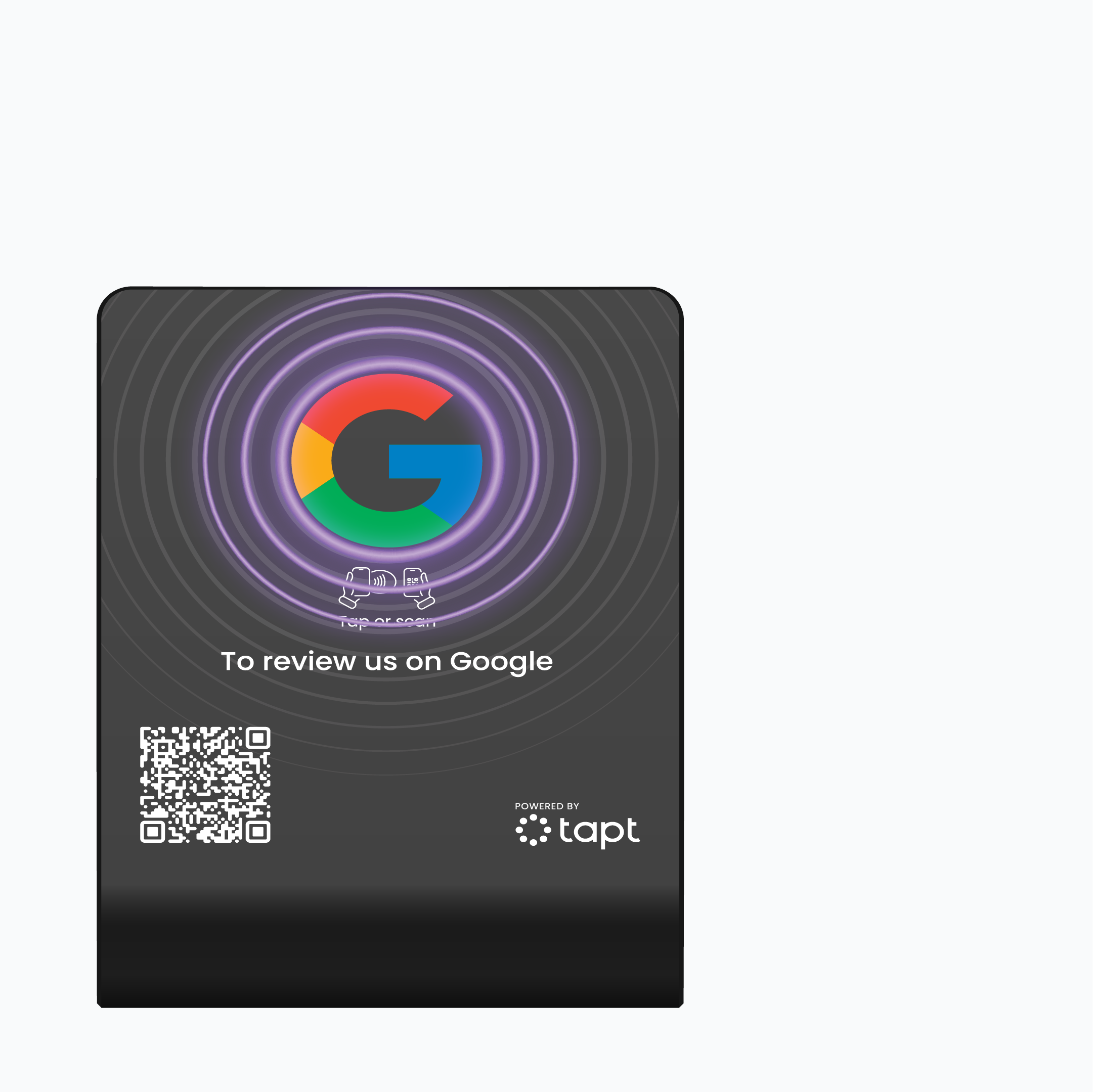 Enhance your business's online presence with the Tapt Google Review Stand! This stylish, minimalist stand encourages customers to leave a quick review with just a tap or scan, making it easier than ever to gather valuable feedback. Designed with a sleek black finish and the iconic Google logo, this stand is a modern addition to any counter space.