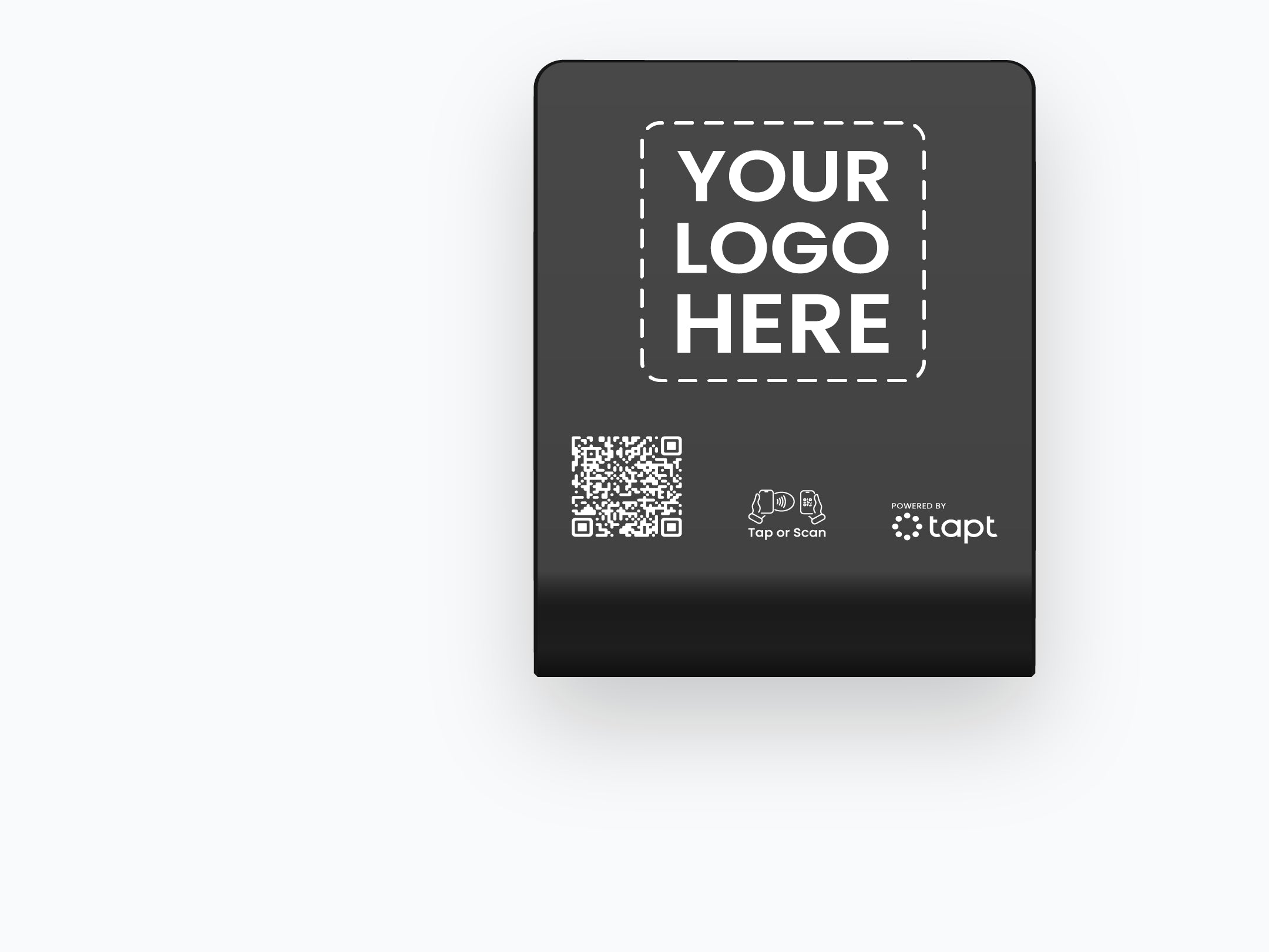 The sleek NFC Stand enhances your business presence. Place it at reception desks or events; your customers can tap the large integrated NFC chip or scan the QR code to access your digital profile. Available in black or white, this compact stand effortlessly shares information and leaves a lasting impression, ideal for elevating customer interactions. Add a logo to make it yours and represent your brand! Customise the logo and digital profile.