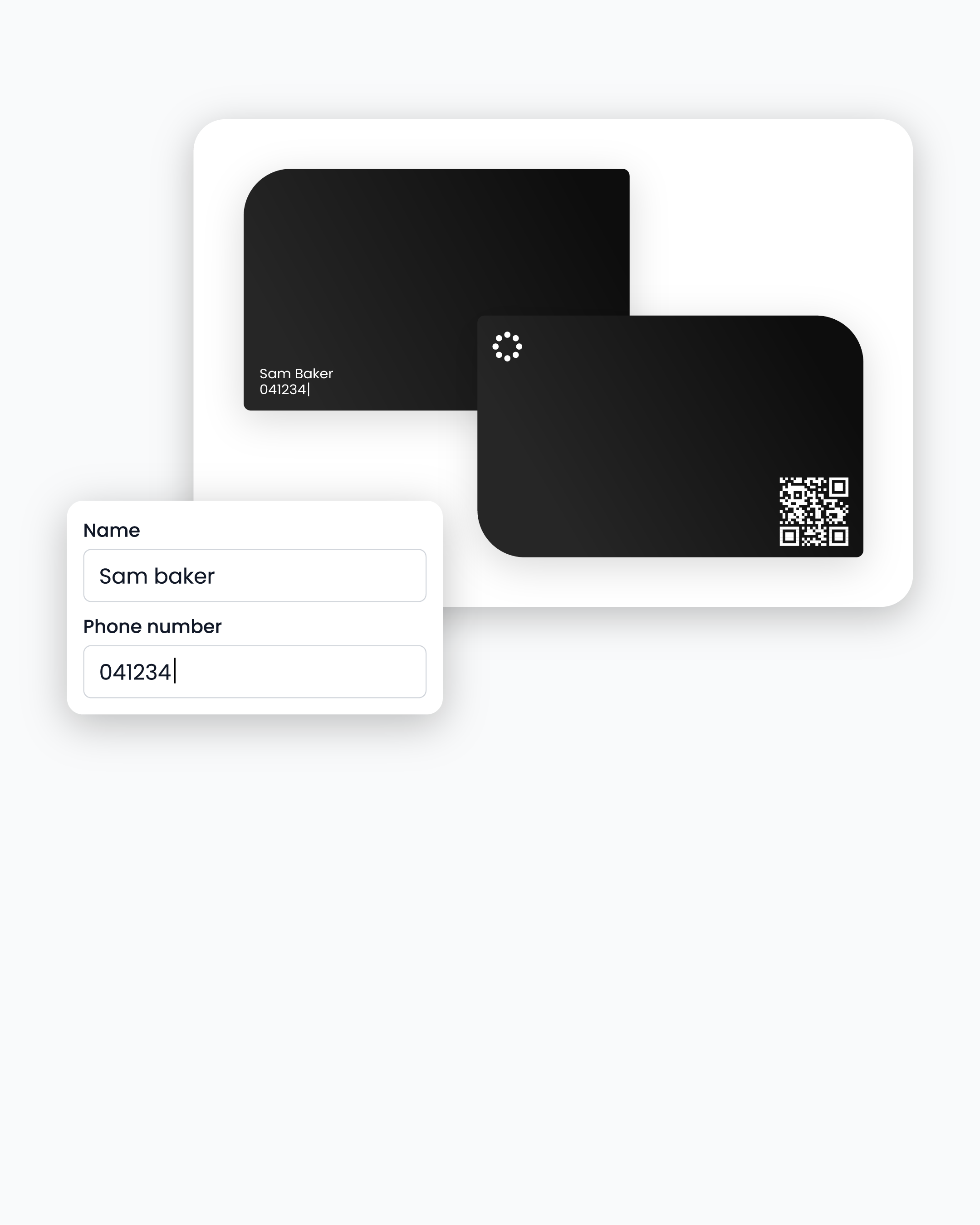 After logging into the Tapt platform you will be able to customise the printed contact information on your card. Simply add your name, phone number and click submit to send them to print!