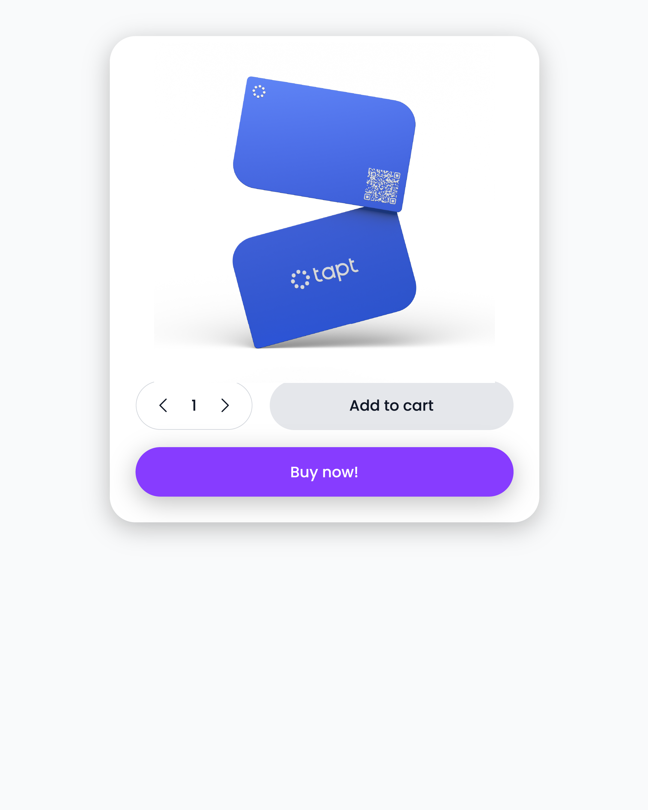 Please be aware that if you purchase 5 or more Tapt products, this purchase will also include a platform fee, which will be added to your cart at checkout. Find out more about our platform features here.