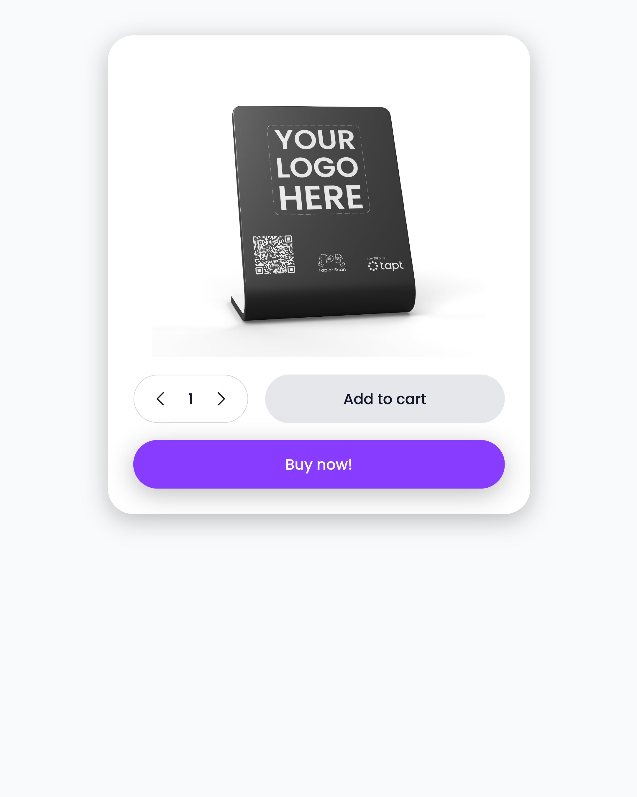 Choose your card quantity, add to cart, and check out! Upon purchase, you will receive a confirmation email with an invite to create your Tapt platform account.